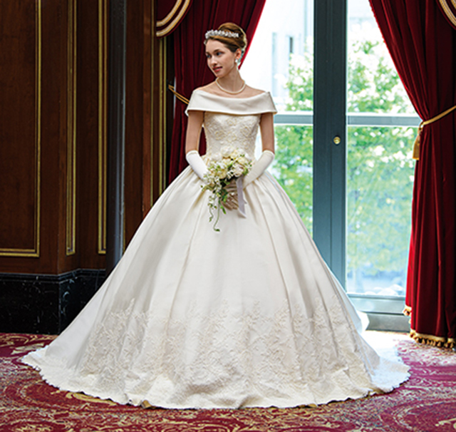 重厚感としっとりとした気品があるため、誰が見えても高級なウェディングドレスであることがわかります。
