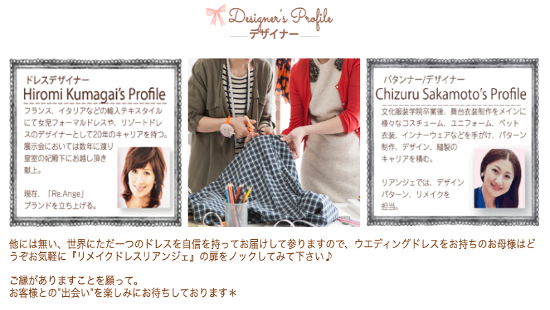 リアンジェでは、20年以上のキャリアを持つドレスデザイナーがリメイクを担当しています。