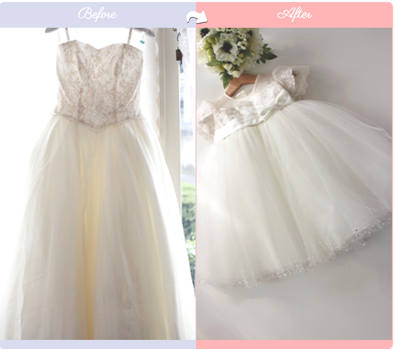 挙式を終えた大切なドレスを、子ども向けドレスへと仕立て直すことができます。