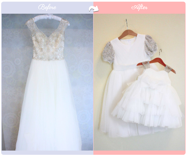 ウェディングドレスから2着の子ども向けドレスを製作しました