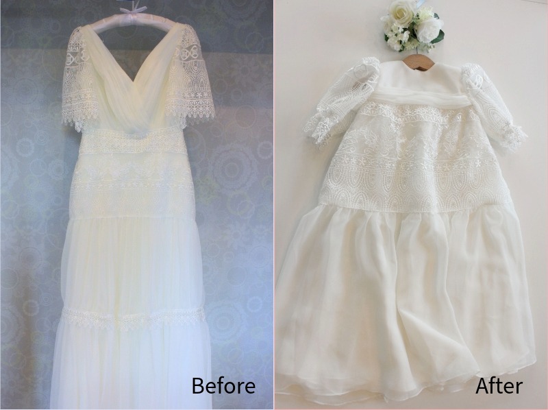 ウェディングドレスから制作されたベビードレスの事例
