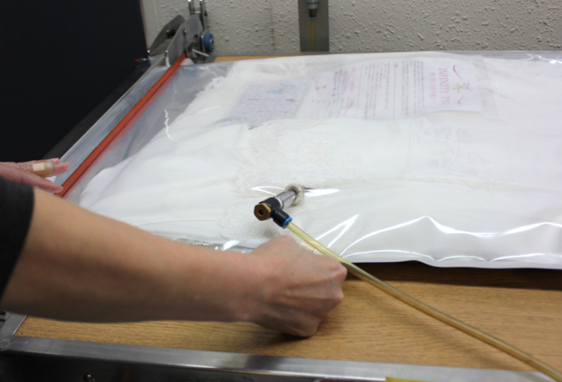 デアドレスクリーニング工房の真空パックは、酸素を除去しながら窒素を注入するため、ドレス全体が過度に圧縮されません。